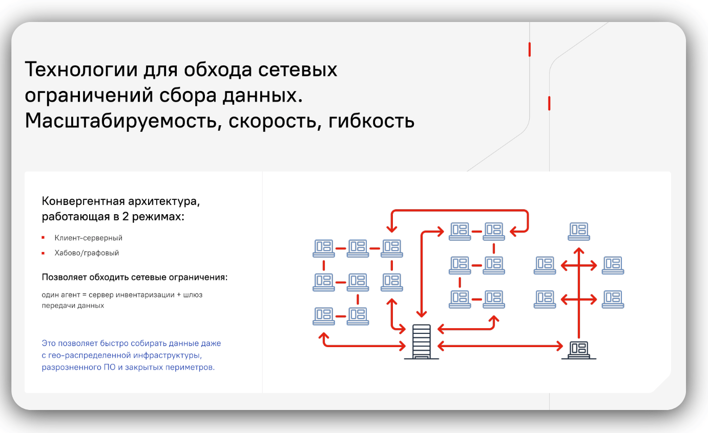 Особое внимание уделяется возможности сбора данных с различных операционных систем, таких как Windows и Linux (Astra Linux, ОС «Альт», МСВСфера, РЕД ОС и др.), а также сетевых принтеров и сетевого оборудования. Подчеркивается способность автоматизировать рутинные задачи и собирать данные, недоступные другим программам, что значительно облегчает работу ИТ-специалистов.